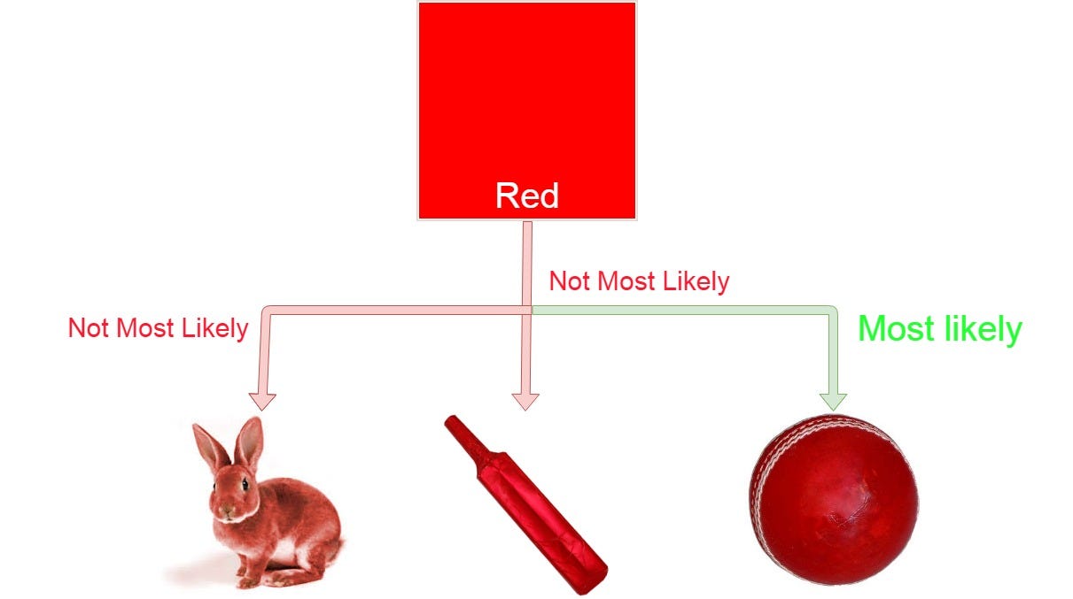 Let's us think you are making a machine and you have given the task as above to classify an object in between bat, ball and a cat. At first you will think of creating a machine that will identify the characters of the object and then map it with your classification objects such that if an object is a circle then it will be a ball or if the object is living-being then it will be a cat or in our case, if our object is red then it is most probable that it will be a ball.